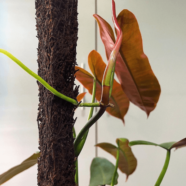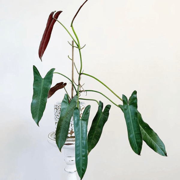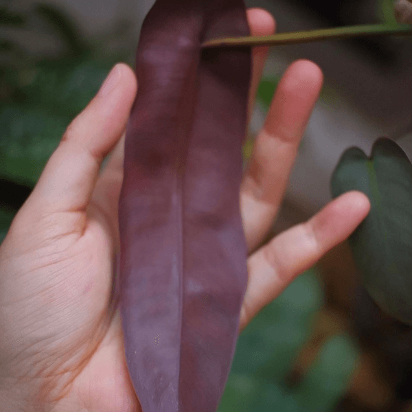 The dual-colored foliage of Philodendron atabapoense makes this rare indoor climbing plant a popular choice. It has really beautiful foliage. At first glance, the leaves appear just green. When you turn the leaf upside down, you’ll notice a deep maroon red. There is a striking contrast between the dark green and the red leaves.