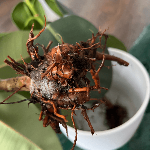 - Wash extra soil from roots gently in room-temperature water and see what comes off. Remove all softened, brown, or black roots.